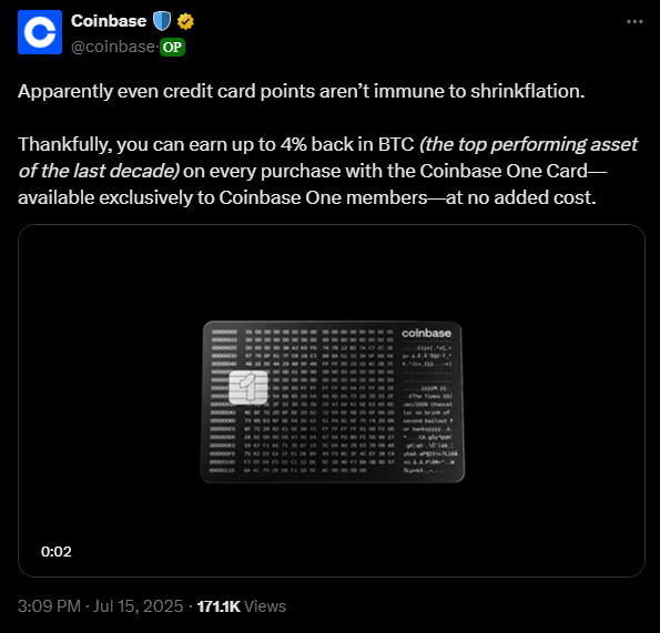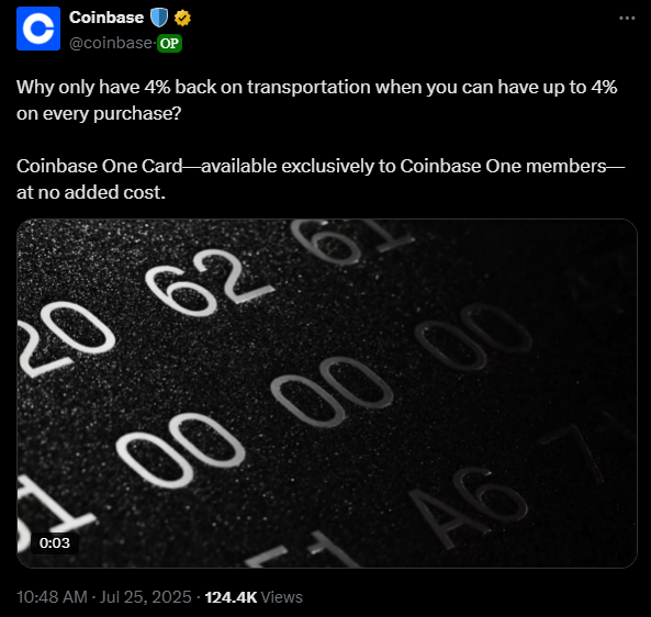 Coinbase One Card—available exclusively to Coinbase One members—at no added cost.